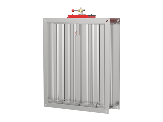 空調(diào)排風(fēng)管用通風(fēng)防火閥包括閥門架和閥板。閥板安裝在閥門架外側(cè)表面的頂部,閥板的表面固定安裝有熔斷桿,熔斷桿的一端固定安裝在閥門架的表面,閥門架的內(nèi)部安裝有固定裝置,用于在閥板密封的時候?qū)⑵滏i緊,閥板與閥門架的表面通過合頁進(jìn)行安裝,閥板與閥門架的表面垂直。