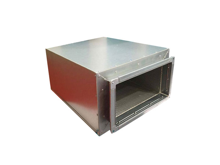 消聲降噪靜壓箱包括靜壓箱本體,靜壓箱本體的上表面和靜壓箱本體的底面均開設(shè)有通口,靜壓箱本體的內(nèi)側(cè)壁通過銷軸鉸接有兩組等距離排列的消聲片,兩組消聲片相互靠近的一側(cè)面均固定連接有松緊帶,靜壓箱本體的內(nèi)側(cè)壁固定連接有定位板,定位板的上表面固定連接有兩個吸音棉,兩個吸音棉相互遠(yuǎn)離的一側(cè)面均與靜壓箱本體的內(nèi)側(cè)壁固定連接,定位板的上表面固定連接有彎板,靜壓箱本體的內(nèi)側(cè)壁固定連接有蜂窩板,蜂窩板的下方設(shè)有過濾網(wǎng),定位板的上表面開設(shè)有四個通風(fēng)口。